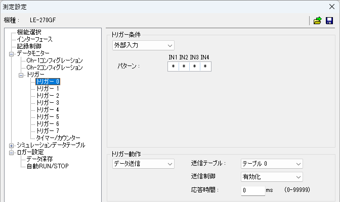 - トリガー0 の条件を外部入力、パターンを全て * (任意) にして