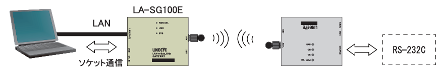 LAN 接続ゲートウェイLA-SG100Eを使用すれば、パソコンからソケット通信を利用して遠隔地のシリアル機器を制御できます。