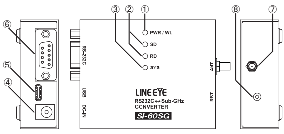 | ③ | SYS LED (設定更新中やエラーなどを表示) |