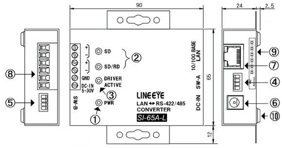 | SD/RD | RS-422/485 → LAN 向きのデータで点滅 |