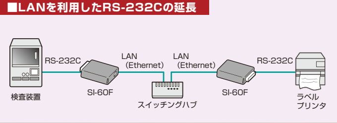 SI-60F/SI-60F-Lを2台使用することで、既存のLAN配線を利用してRS-232Cを延長することが可能です。
