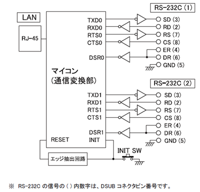 LAN⇔RS-232C(Dsub9)×2ポート変換