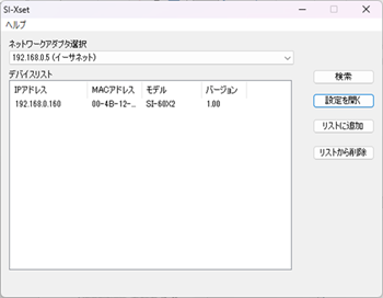 - ネットワーク上のインターフェースコンバータ(SI-60X2、SI-70X)の検索とそのIPアドレスやMACアドレスの表示