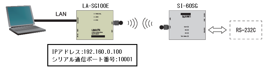 SI-60SGとLA-SG100Eを使用して遠隔地のシリアル機器と接続する¶
