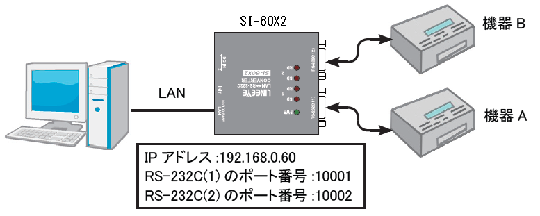 SI-60X2を使用して2台のシリアル機器と接続する¶