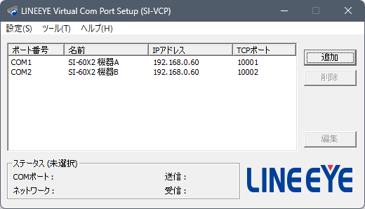 設定後はメイン画面の一覧に、2つの仮想COMポートが追加されます。