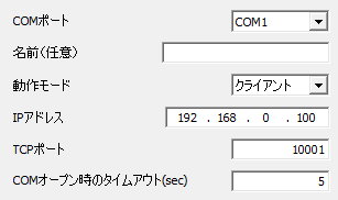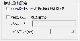 この時間を超えても接続が完了しない場合は、COMポートのオープンに失敗します。 接続に時間がかかりオープンに失敗する場合に、この値を大きくして調整してください。