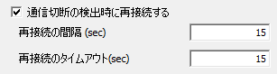 チェックを入れることで再接続が有効になります。- 再接続の間隔
