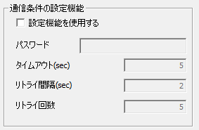 接続対象のSIシリーズ本体に通信パスワードが設定されている場合に使用します。チェックを入れると、接続開始時にパスワード認証を行います。 詳細は、SIシリーズ本体の取扱説明書を参照してください。-