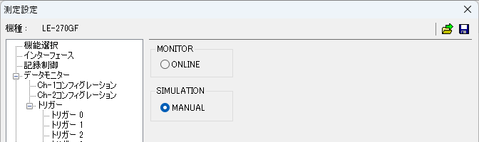 - 「自動RUN/STOP」にて電源投入で測定開始 (クイックスタート)を設定します。