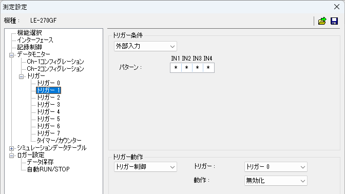 - トリガー0 の条件を外部入力、パターンを全て * (任意) にして